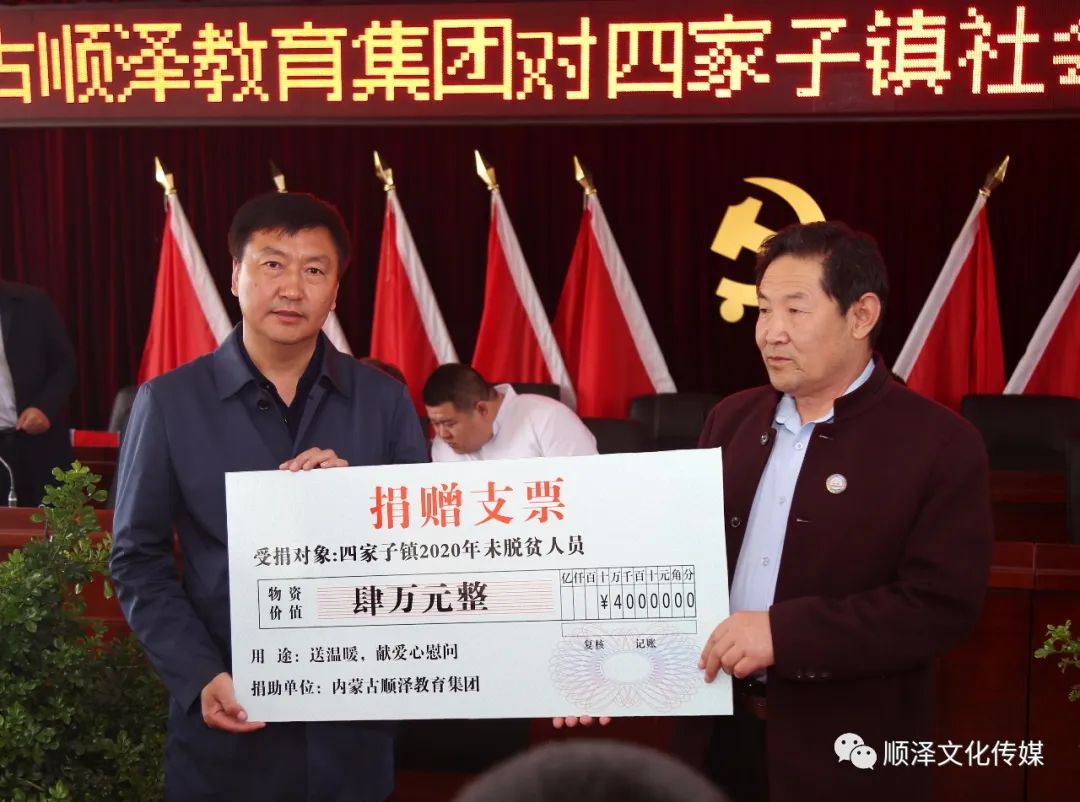 2020年4月18日内蒙古顺泽教育集团对四家子镇进行“兜底式”扶贫。