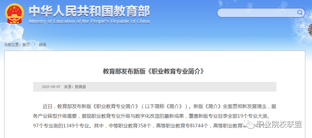 新版《简介》立足强化职业教育类型特色,增强职业教育的办学吸引力,提高社会对职业教育的认知水平,对中等职业教育358个专业、高等职业教育专科744个专业、高等职业教育本科247个专业逐一进行了简介。从内容上看,新版《简介》将原“职业能力要求”和“主要职业能力”调整为“主要专业能力要求”,按专业对应的职业(岗位群或技术领域)需求,突出强调根据典型工作任务分析出的主要专业能力要求;将原“专业教学主要内容”和“核心课程与实习实训”调整为“主要专业课程与实习实训”,具体包括专业基础课、专业核心课和实习实训环节,专业课程体系更加完整,对各学校制订专业人才培养方案的指导性更强,也为学校教育教学改革留出了合理空间;将原“职业资格证书举例”调整为“职业类证书举例”,按照职业资格证书、职业技能等级证书等进行列举,更加符合新修订的职业教育法的要求,有利于推进职业教育岗课赛证综合育人,体现了中职、高职专科、高职本科的人才培养定位区别与关联,彰显了与普通教育学科(专业)人才培养的区别与关联,更新了课程体系,拓展了能力要求,增列了实习场景、接续专业、职业类证书等,有利于提高职业教育专业适配产业升级的响应速度,为学校制订适宜的人才培养方案提供遵循、为学生报考职业院校及继续深造提供指导、为校企合作提供依据、为用人单位录用毕业生提供参考。