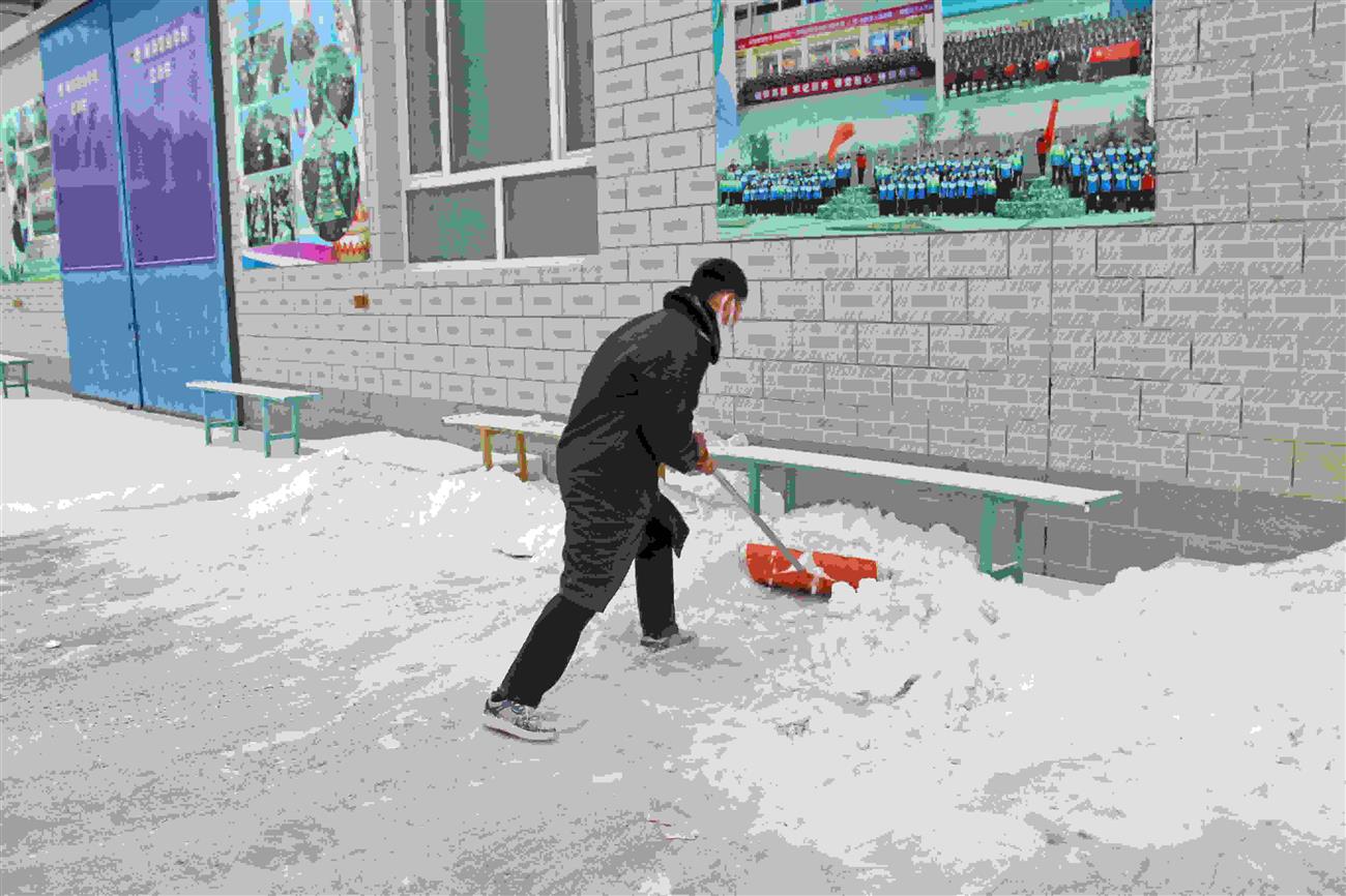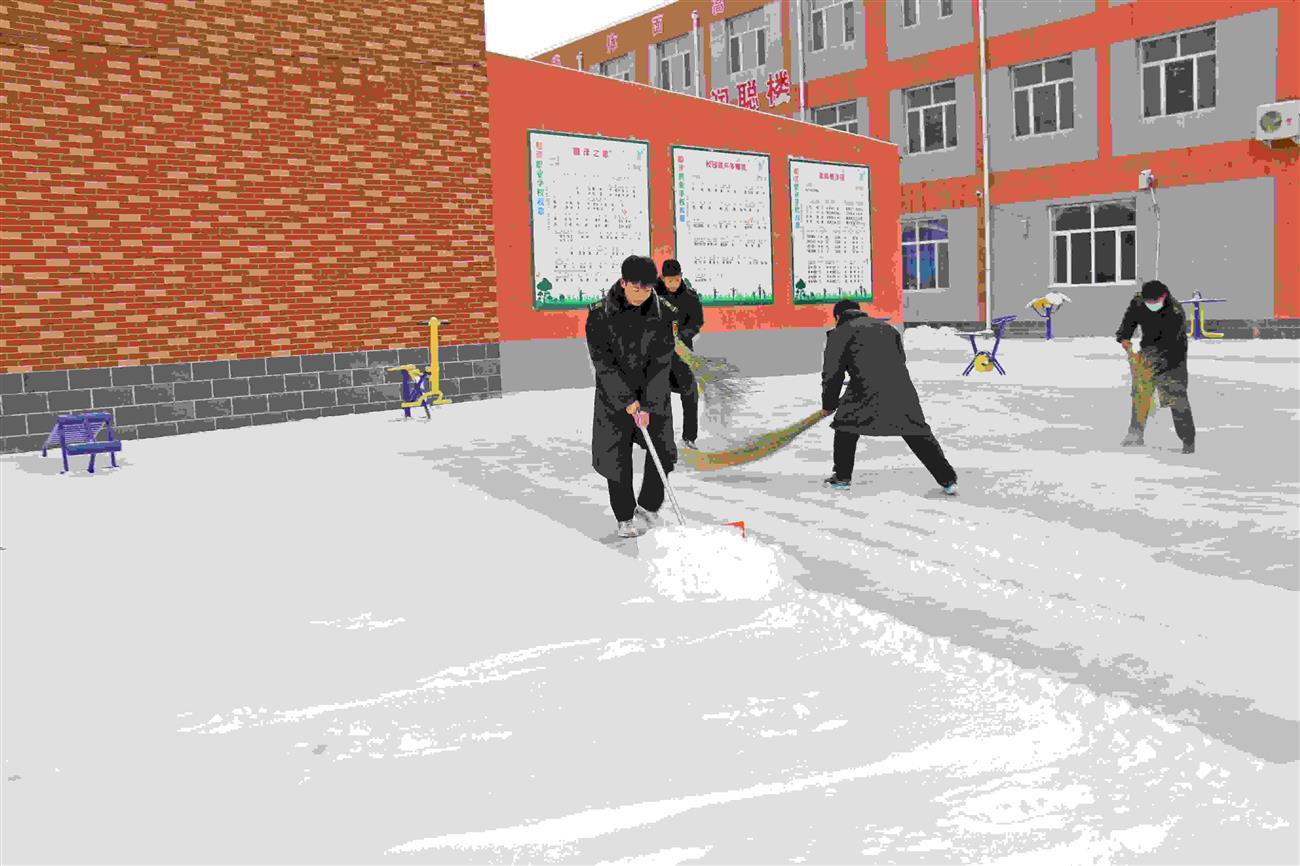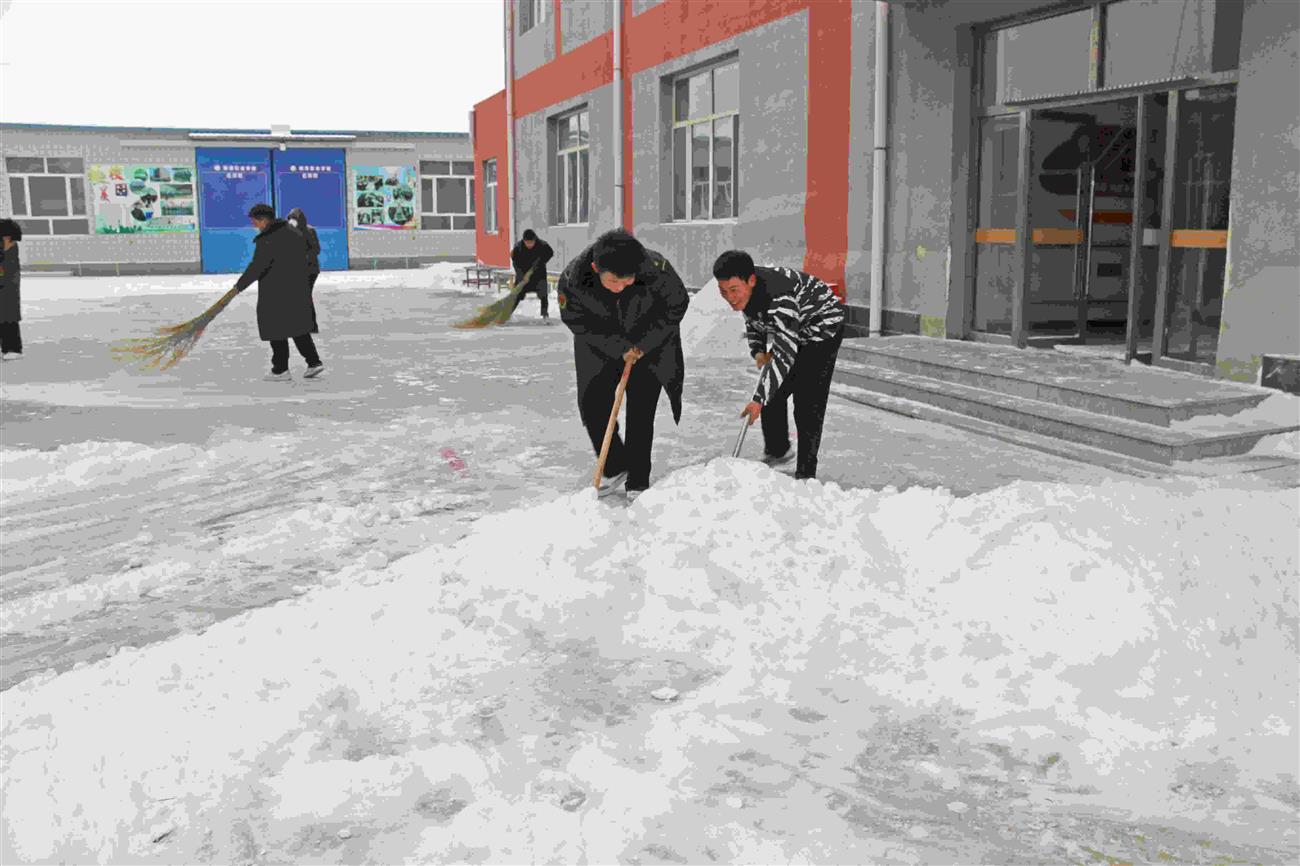 此次扫雪活动的顺利完成,不仅使学校变得更加整洁,而且让同学们得到了锻炼,更展现了我校师生敢于吃苦的精神,加强了我校的校园精神文明建设。师生扫雪铲冰的身影为银装素裹的校园增添了一道靓丽的风景,也给寒冷的冬日校园带来了温暖。为师如水丹心一片育桃李,上善若水馨香一瓣写春秋。一场寒冷的大雪融化在我校老师和同学们们铲冰扫雪的热情之中,为学校活动的开展和师生的安全提供了有利保障。