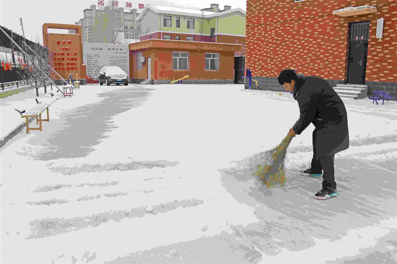 师生共除雪 温情似暖阳
