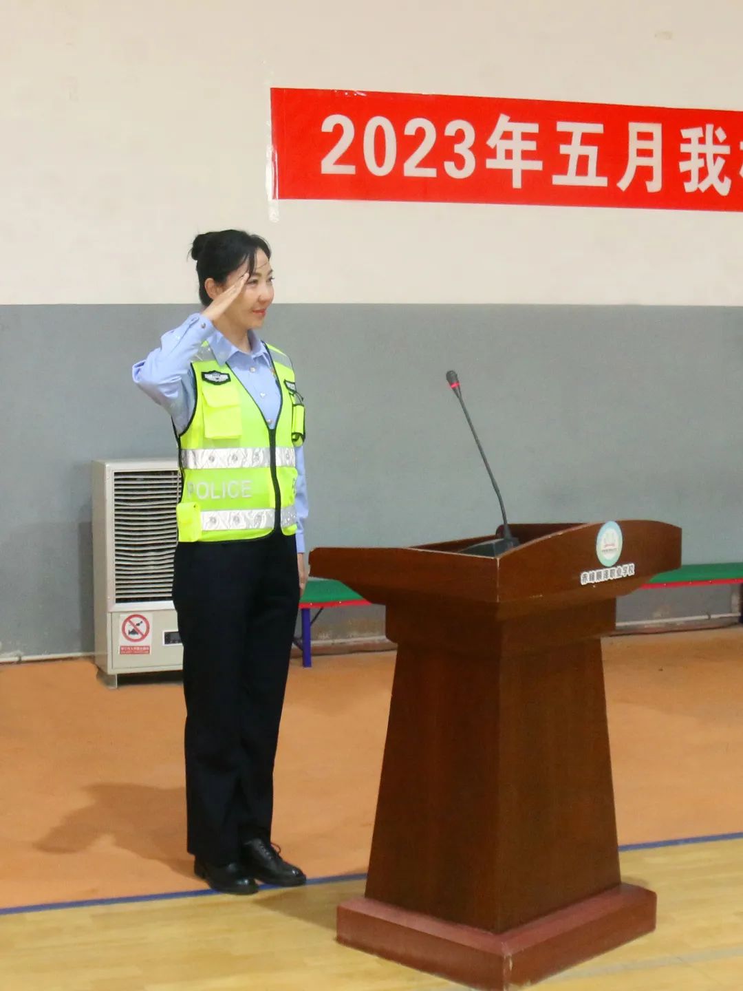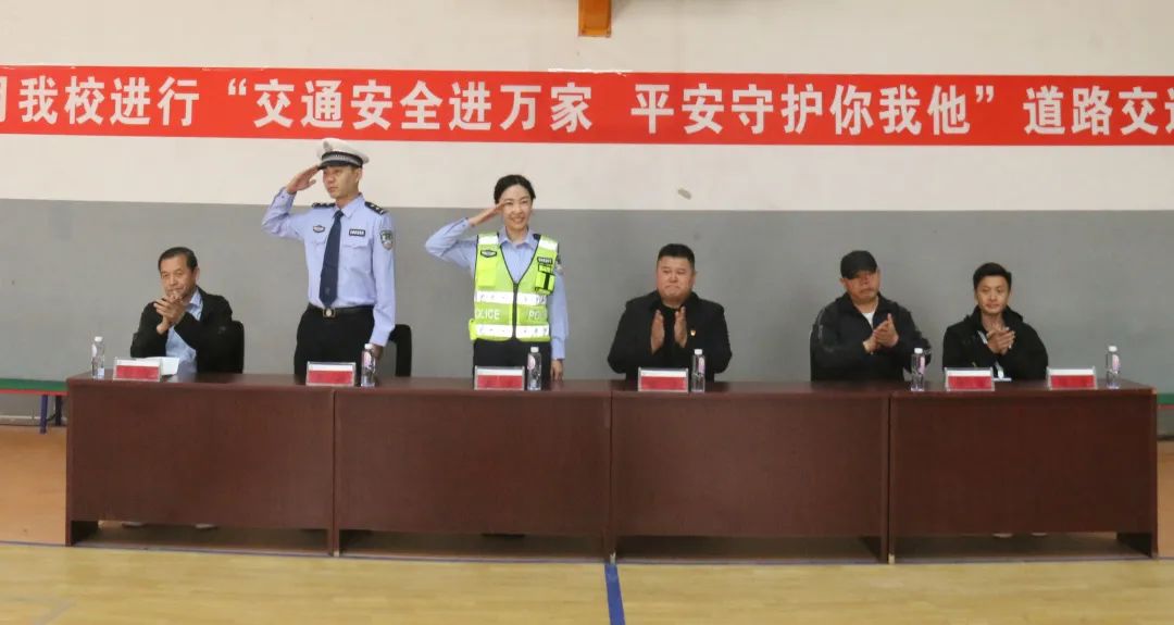 最后,杨警官带领全校师生在体育上庄严宣誓:“认真学习交通法规。倡导文明交通、摒齐交通陋习,从小做起,从我做起,乘文明车,走文明路、做文明人,争做文明交通的宜传者和践行者。”