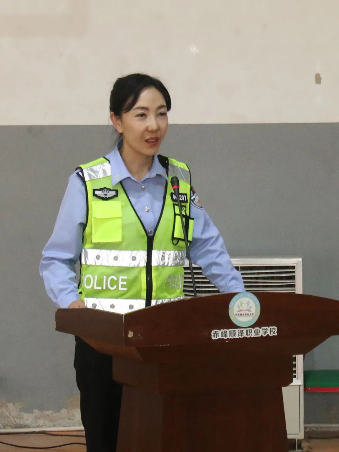 在讲座中,杨警官用简洁的语言、典型的交通违规例子,讲解交通安全基础知识,引导现场的学生正确认识交通出行规则,并告知学生群众提高安全意识和安全警觉性,出行时多看、多听、不抢行,严格遵守交通规则。