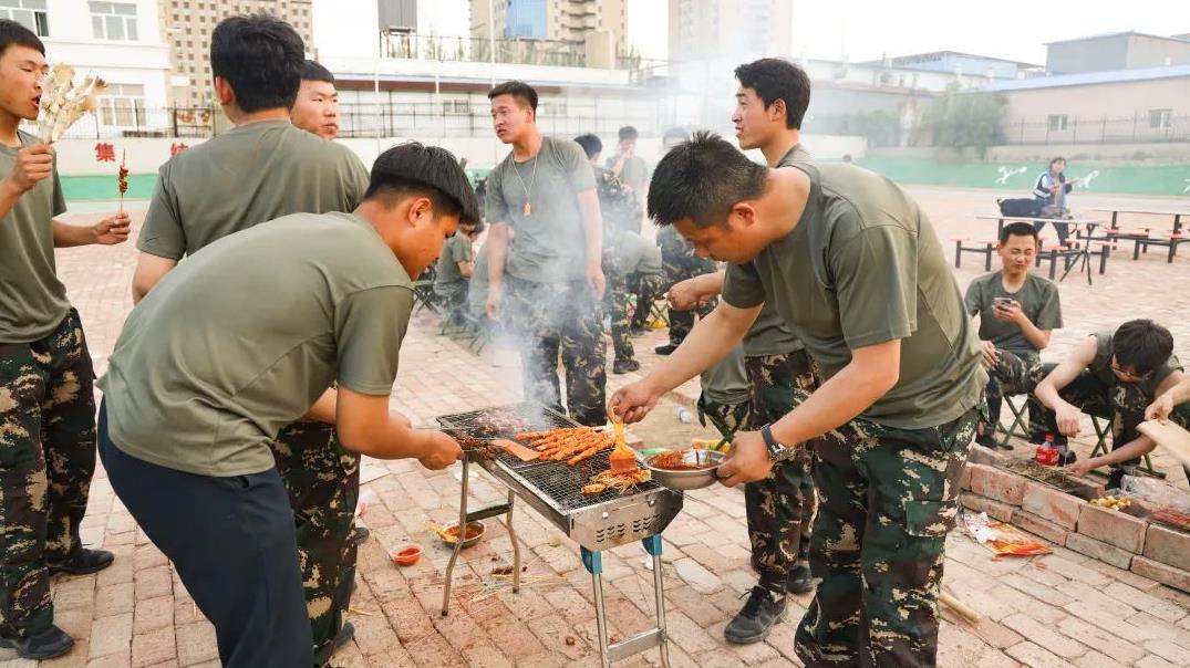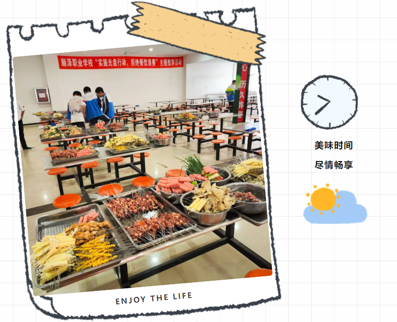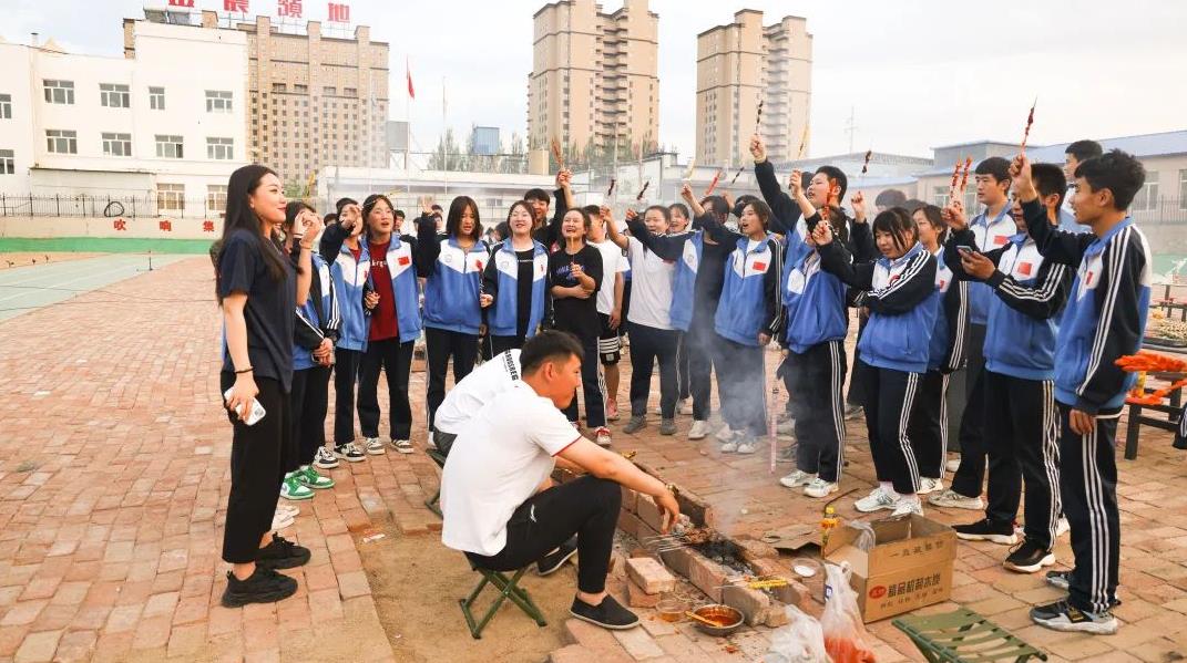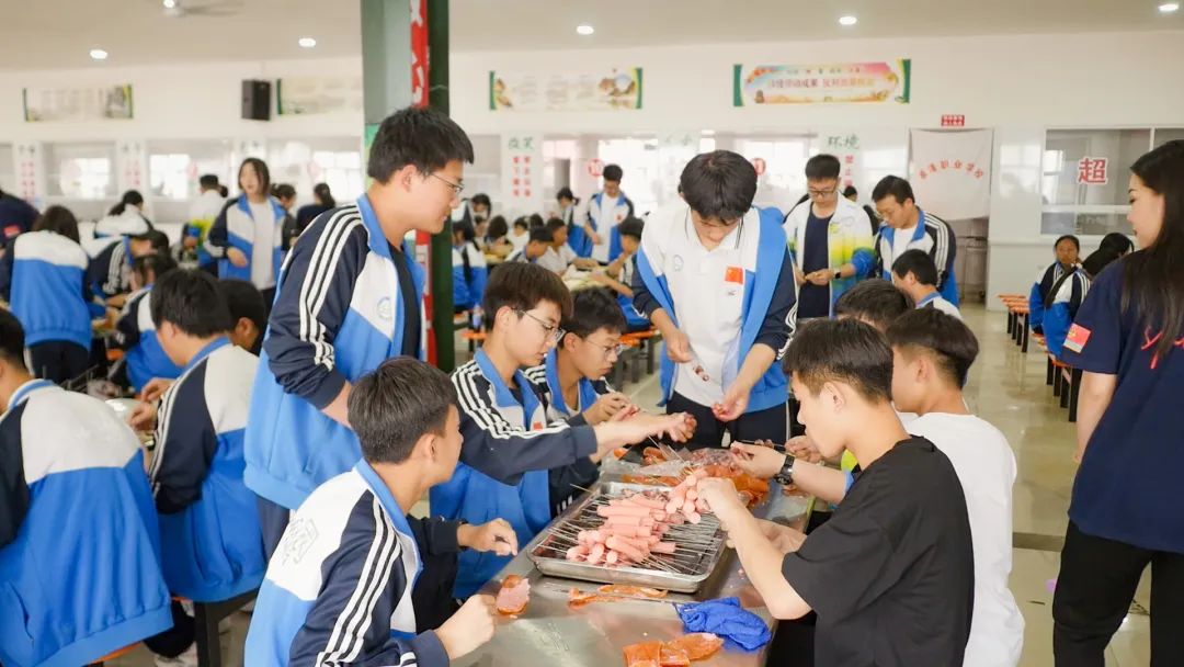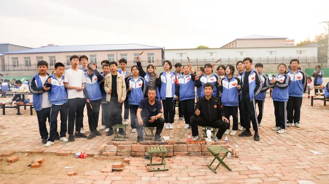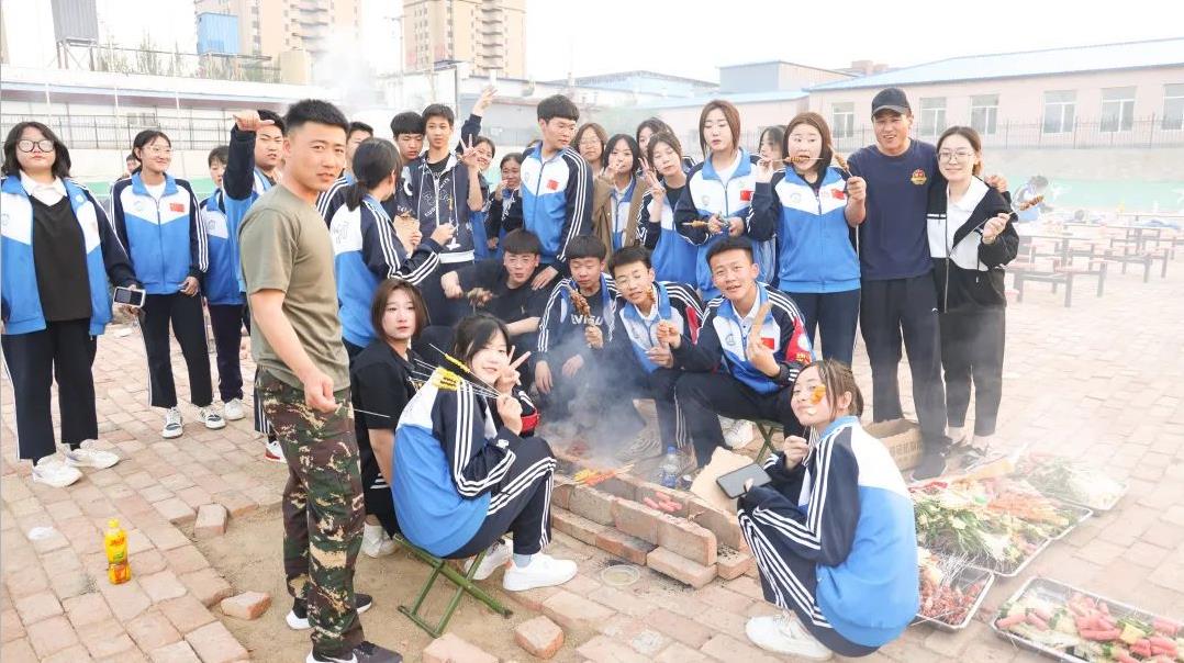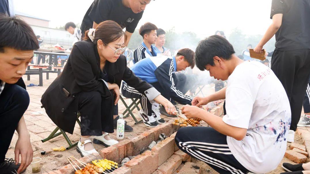 一旁的烤架上,一串串美味的肉串、鸡肠正滋滋地冒着香气,此刻是味蕾的享乐!炉火正旺,映照着张张灿烂的笑脸,此刻全校师生留在脸上的更是幸福与欢愉!人间烟火气,最抚凡人心。瞧,大家齐齐动手,一盘盘、一串串的烧烤燃起了师生们对生活的热情。炊烟袅袅,放飞的是热情;美味无穷,享受的是生活。
