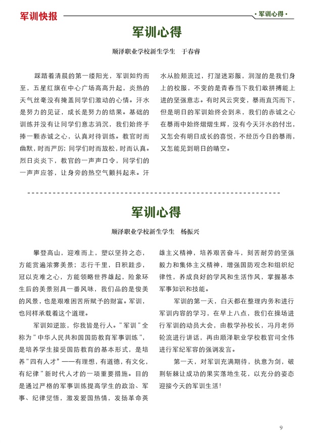 顺泽军训快报第一期