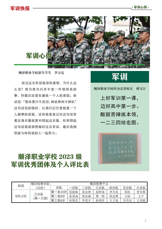 顺泽军训快报第二期