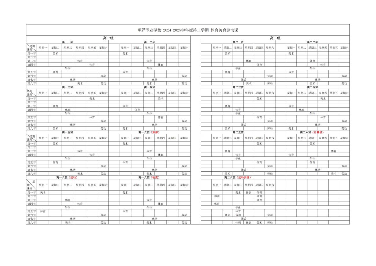 落实五育并举·晒出课程风采——顺泽职业学校“晒课表”
