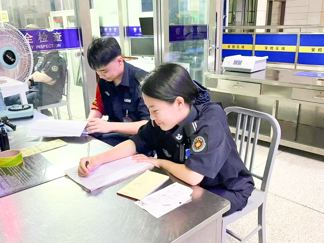 为尽快胜任岗位,丁丽颖把校园里“勤学好问”的劲头带到了工作中。休息时,她主动向带教师傅请教安检设备的使用技巧,把不同危险品(如管制刀具、易燃易爆物品)的外形特征、识别要点记在笔记本上,利用下班时间反复背诵;面对旅客咨询,她提前梳理常见问题——“充电宝容量上限是多少”“化妆品单瓶不超过100毫升可随身携带”“婴儿车需要折叠过安检吗”,将答案练得滚瓜烂熟,确保回应时清晰准确;实操中,她跟着师傅学习“眼勤、手快、嘴甜”的工作法,眼观安检机屏幕不放过任何可疑图像,手递行李时轻拿轻放,引导旅客时语气温和,慢慢从“新手”成长为能独当一面的“熟练工”。