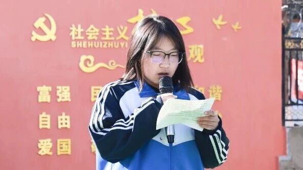 深秋的清晨,天朗气清。伴随着雄壮激昂的《义勇军进行曲》,鲜艳的五星红旗在全场师生的庄严注目下被高高擎起,庄严肃穆,全体师生行注目礼。升旗仪式后,活动进入主题演讲环节。