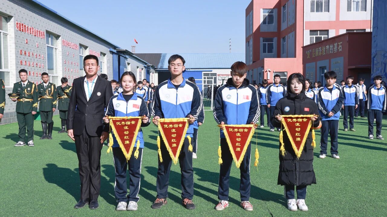 升旗仪式后,政教主任许晓明老师宣布了上周优秀宿舍名单,并对下周工作进行了布置。