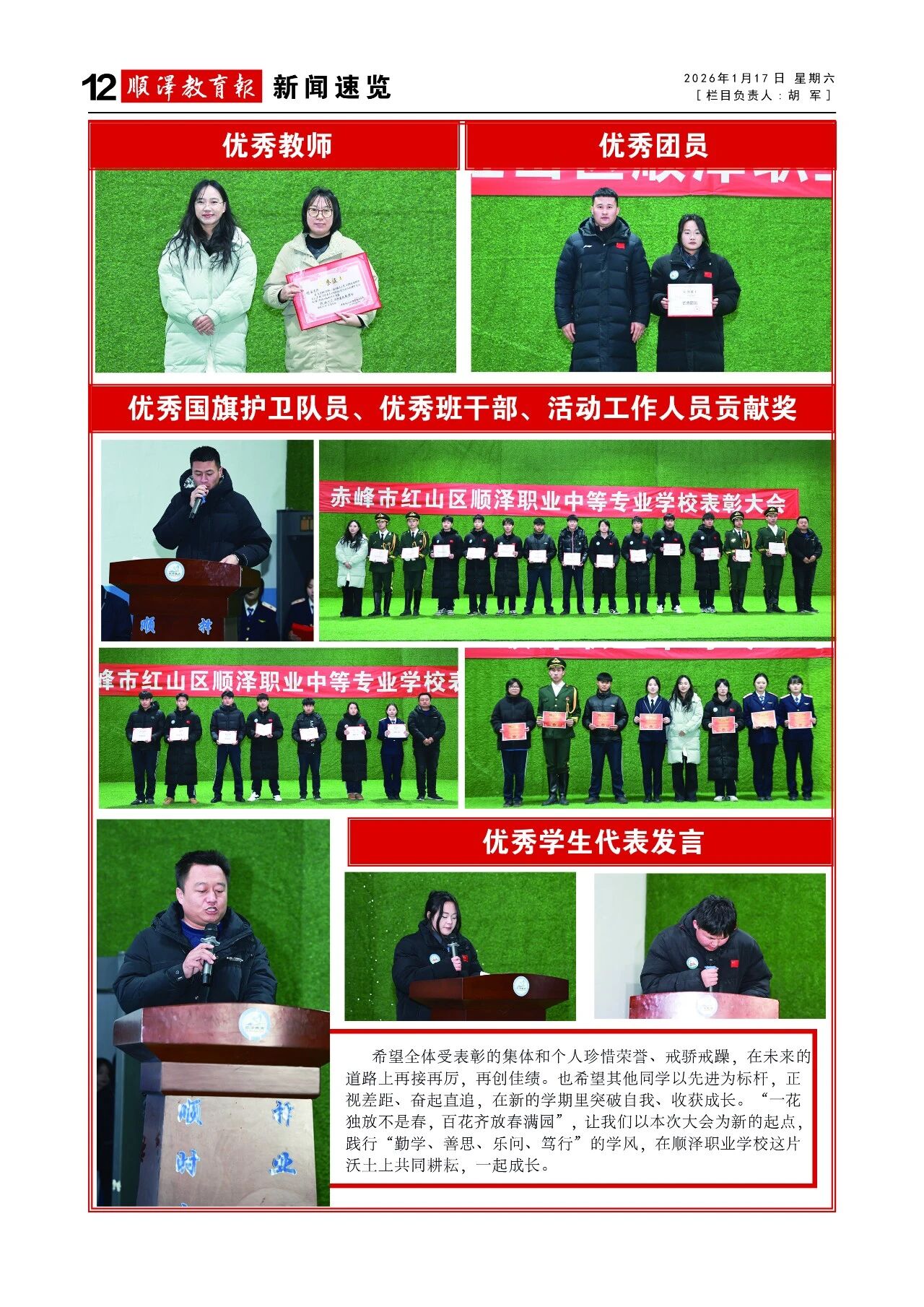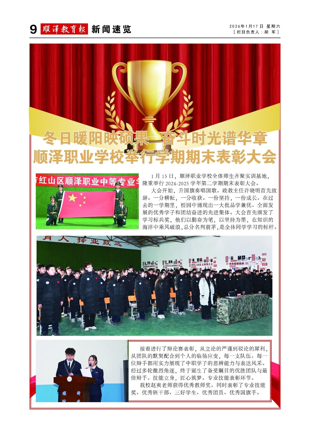 冬日暖阳映硕果奋斗时光谱华章——顺泽职业学校举行学期期末表彰大会