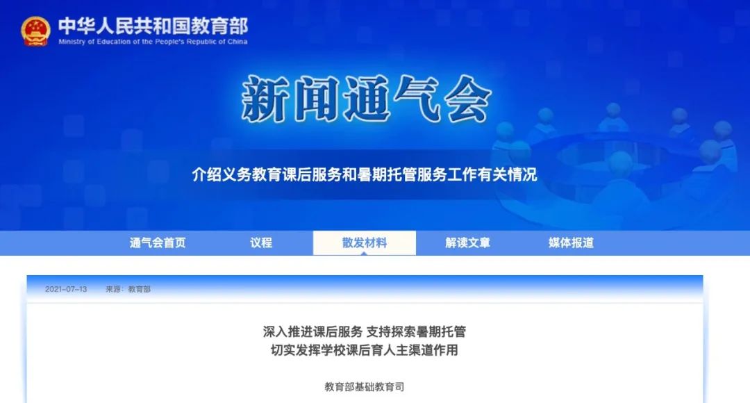 7月13日下午,教育部举行新闻通气会,介绍义务教育课后服务和暑期托管服务工作有关情况。教育部基础司司长的发言明确:今秋推行一校一案课后服务,推行课后服务5+2模式。