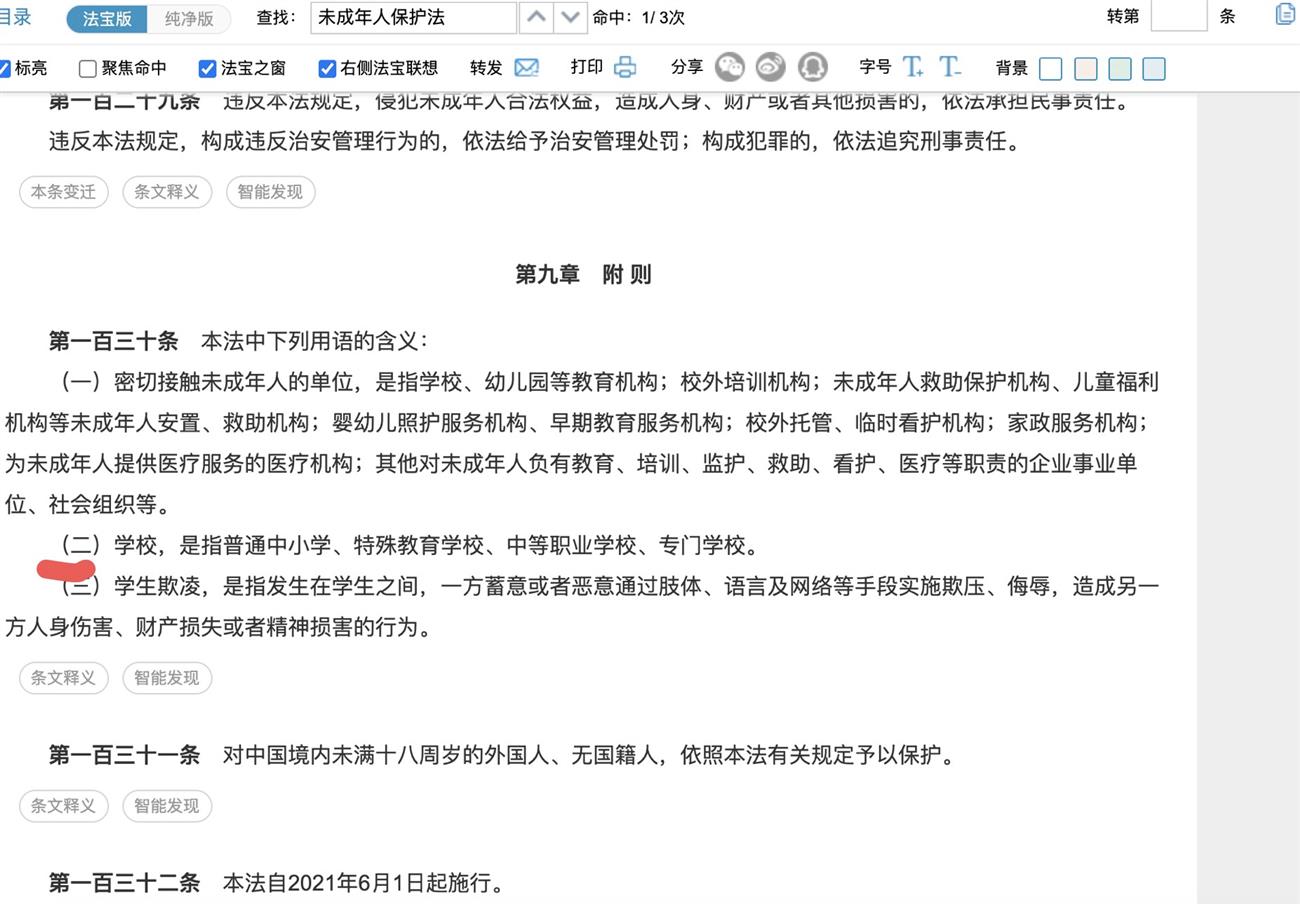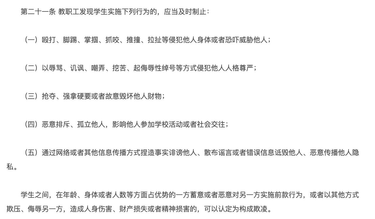 此外,今年6月1日,新修订的《未成年人保护法》正式施行。《未成年人保护法》附则中对校园欺凌做了定义,叫“学生欺凌”。